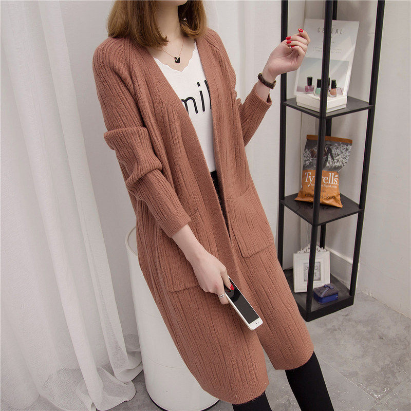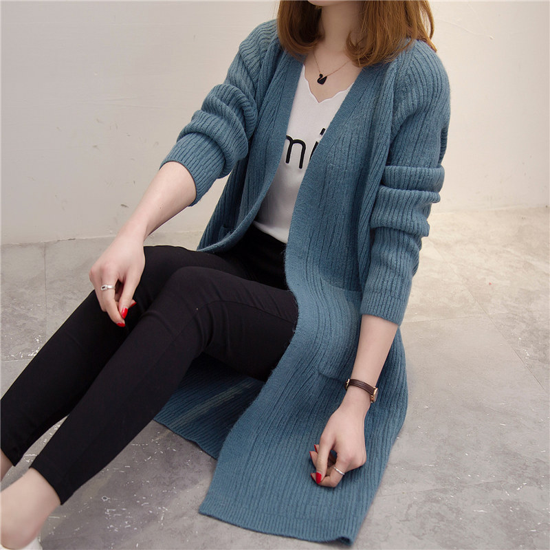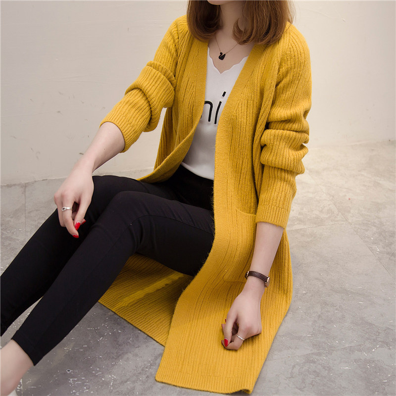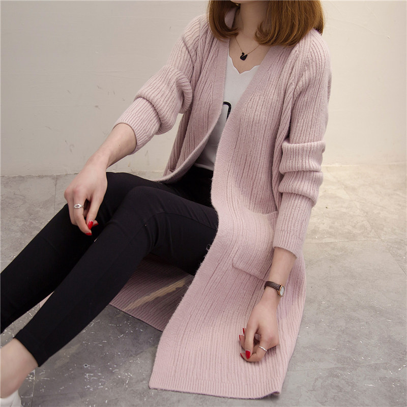 新款女裝潮韓版寬松中長款毛衣外套女百搭長袖學生針織衫開衫