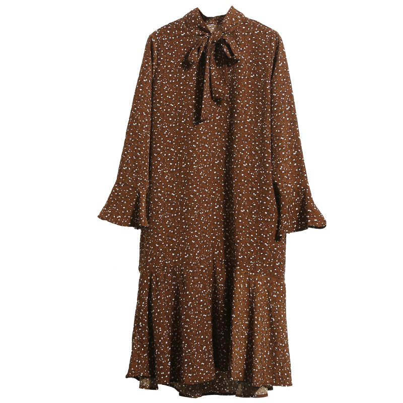 春夏碎花連衣裙女裝新款韓版蝴蝶結長袖寬松荷葉邊喇叭袖雪紡長裙