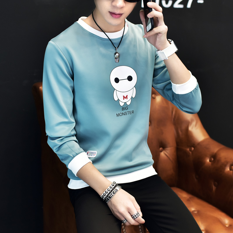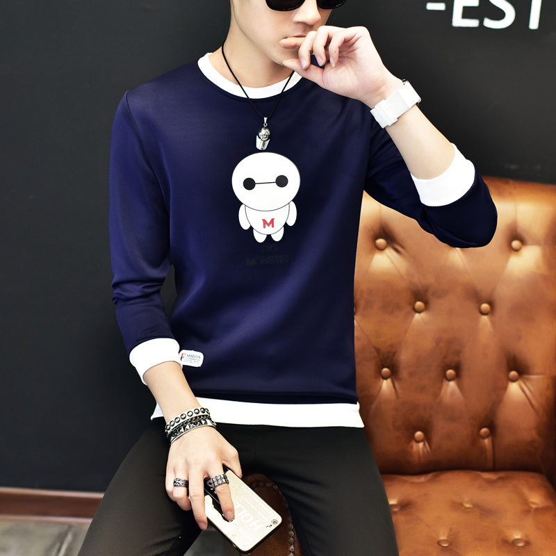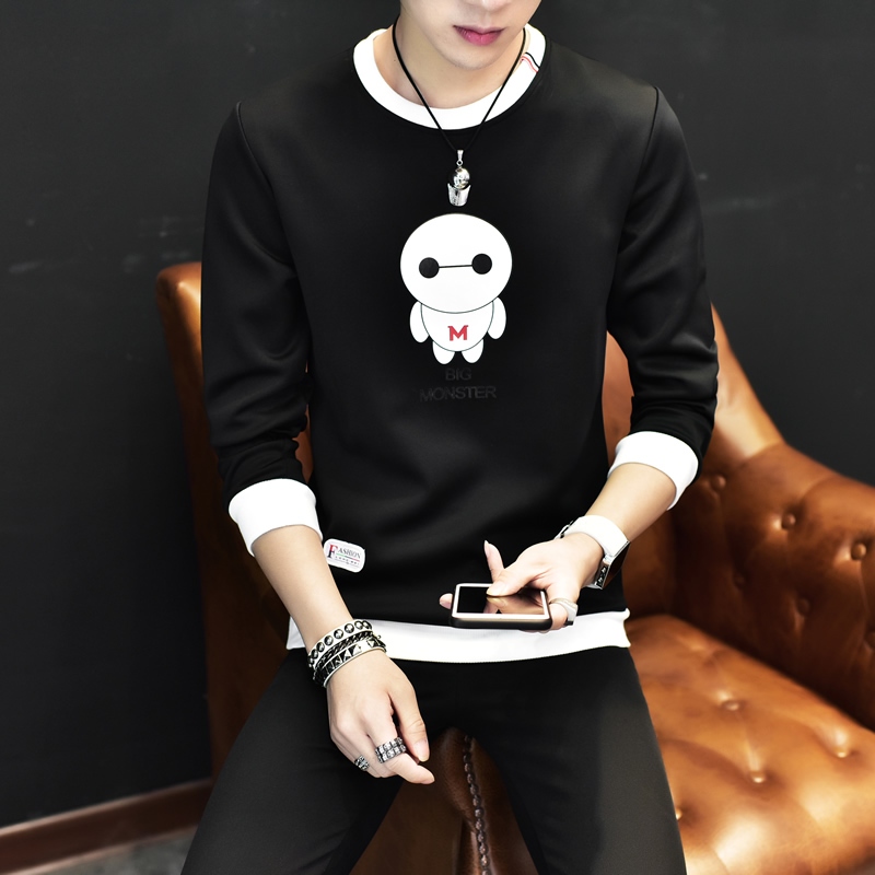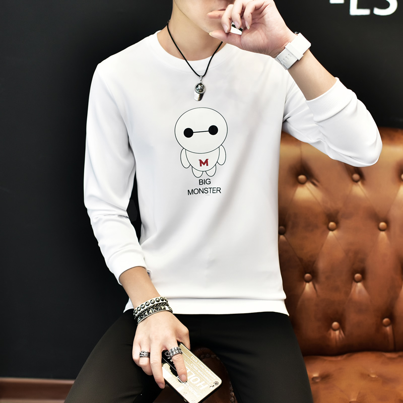2017男士長袖T恤韓版大碼打底衫圓領體恤修身潮流上衣
