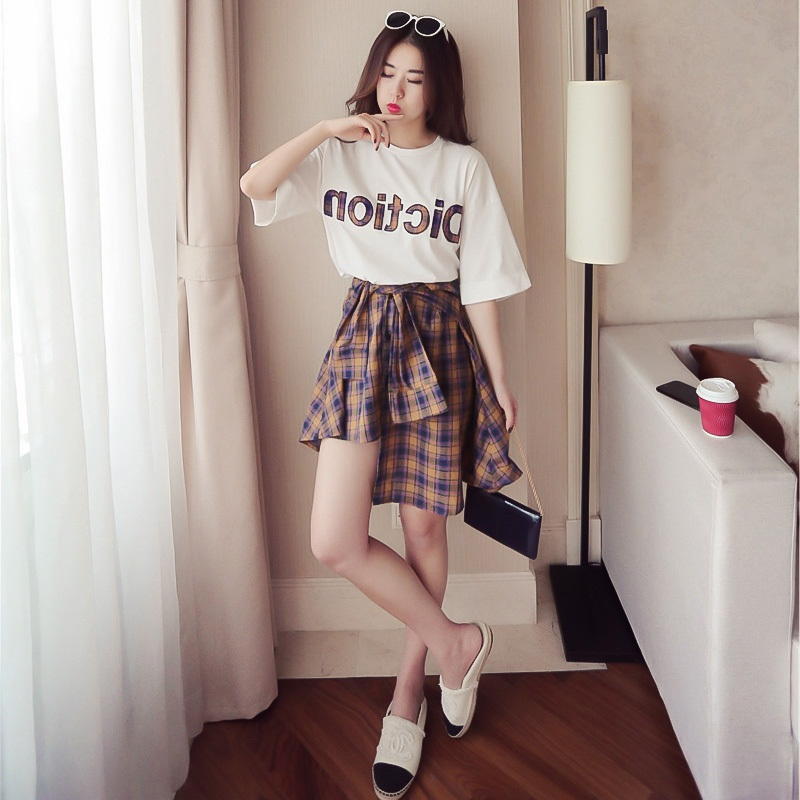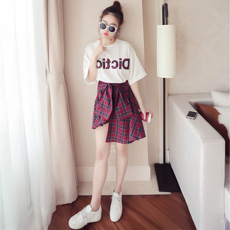 春夏新款韓版套裝裙女顯瘦T恤上衣+氣質半身裙兩件套女裝連衣裙潮