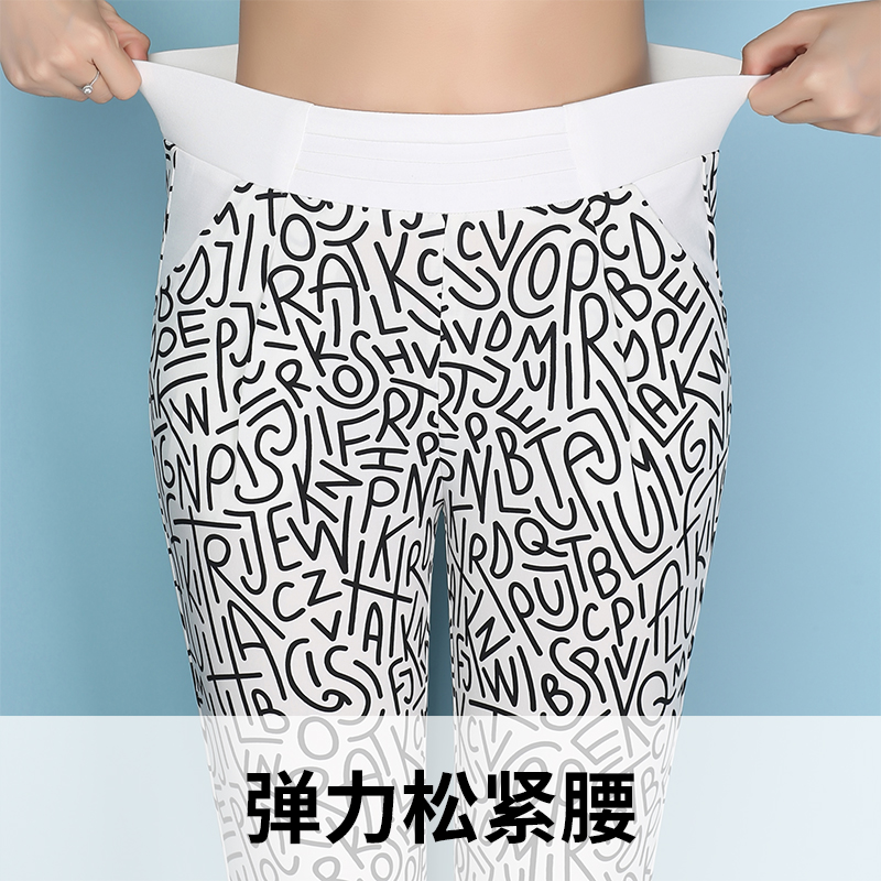 夏季新款女褲薄款九分褲印花褲子高腰顯瘦哈倫褲寬松休閑褲小腳褲
