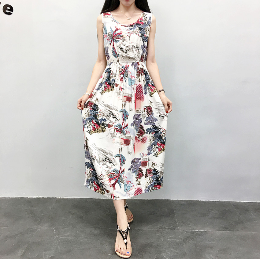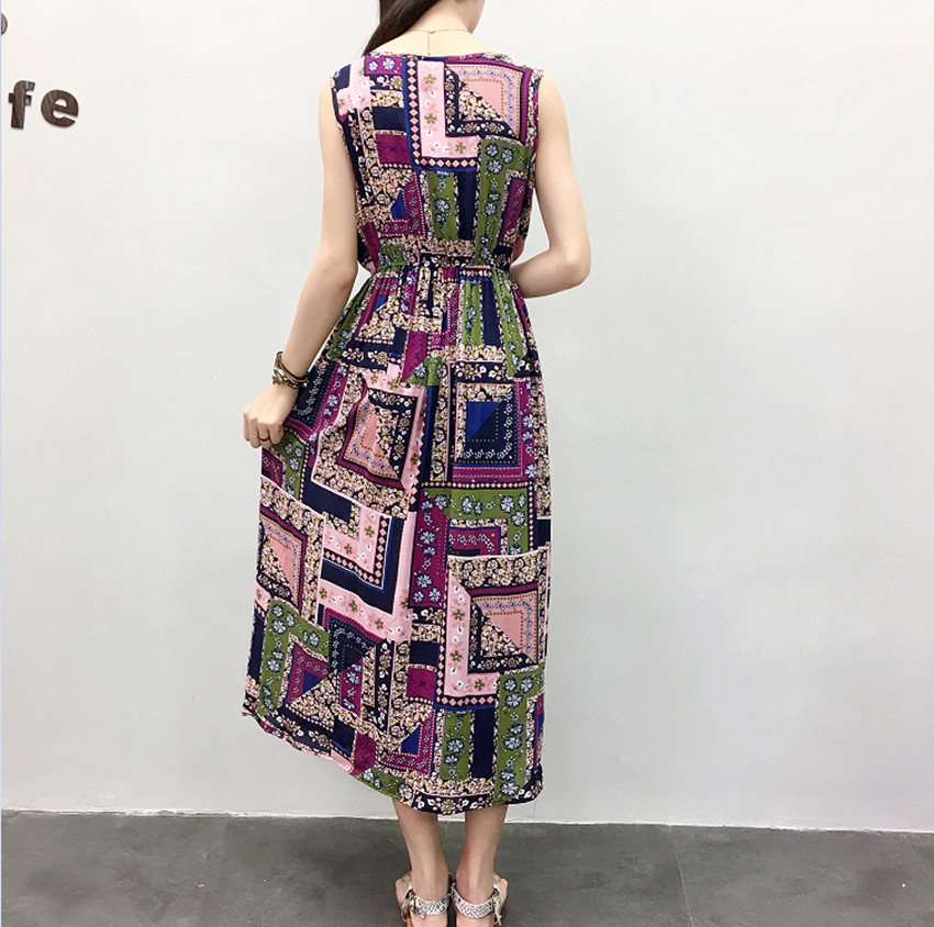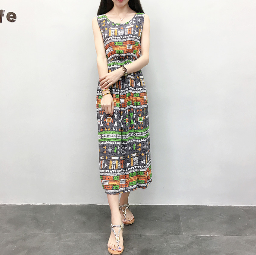 波西米亞長裙沙灘裙連衣裙夏人棉海邊渡假裙綿綢裙棉綢碎花背心裙
