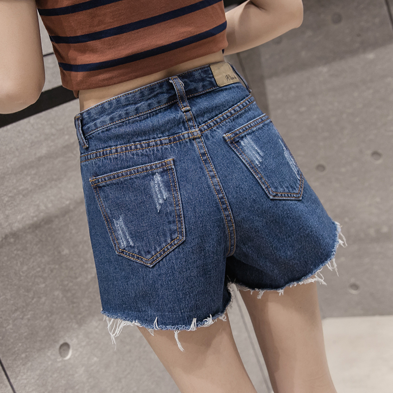 春夏季韓版顯瘦高腰寬松學生休閑褲破洞毛邊牛仔短褲女潮