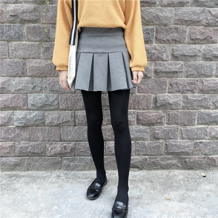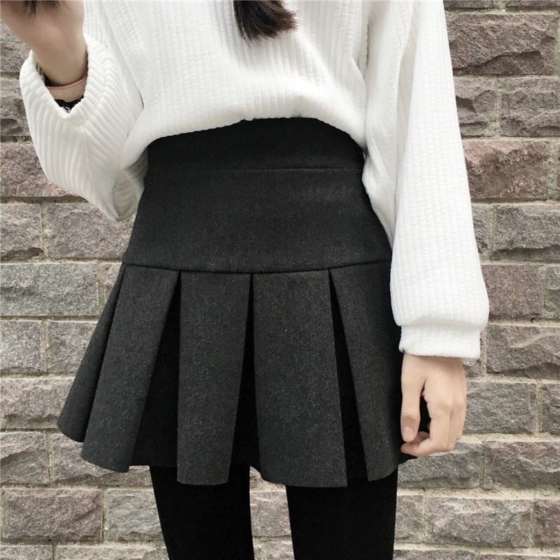 韓國學院風秋冬款百搭加厚毛呢半身裙百褶裙褲松緊高腰短裙女