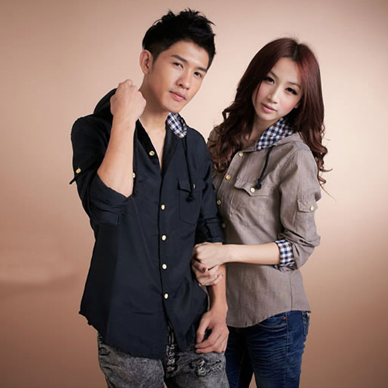 春裝新款男士長袖襯衫韓版修身情侶襯衫男裝休閑襯衣潮