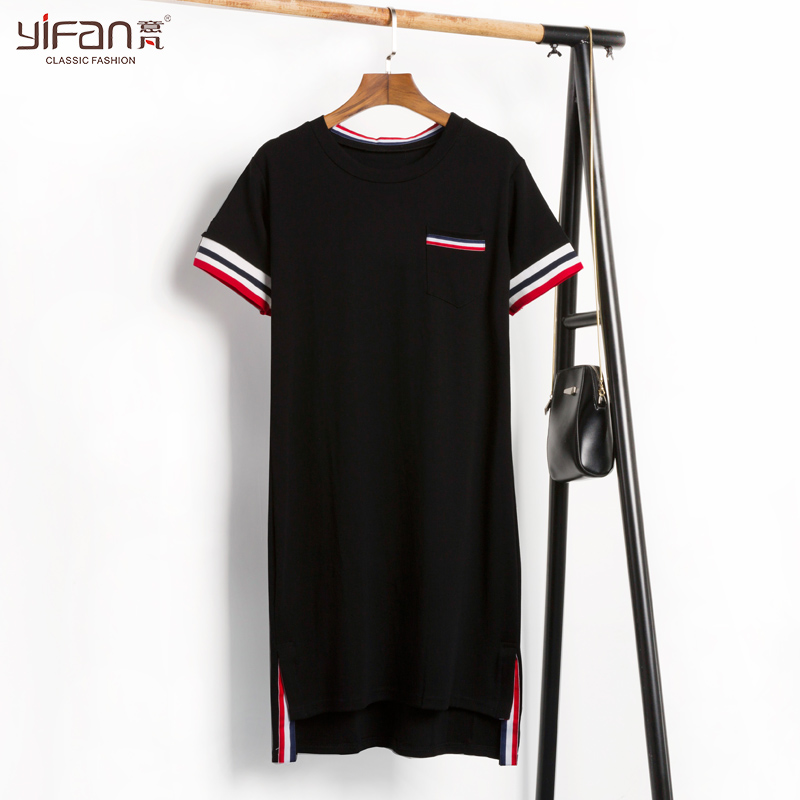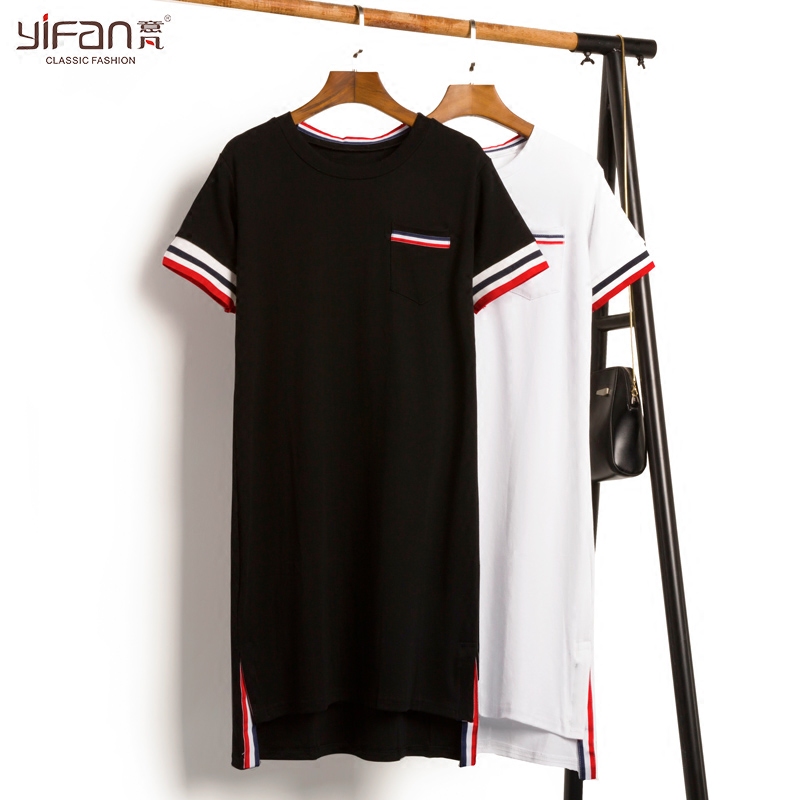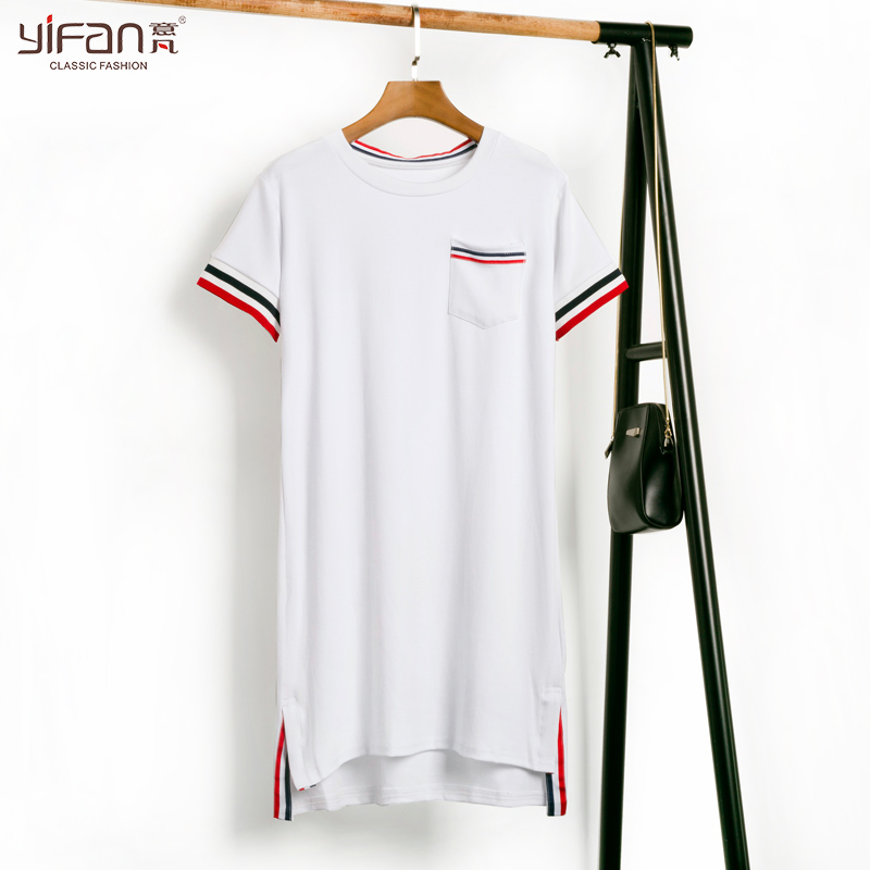 夏裝短袖側開叉運動純棉白色休閑寬松加長T恤中長款體恤連衣裙女