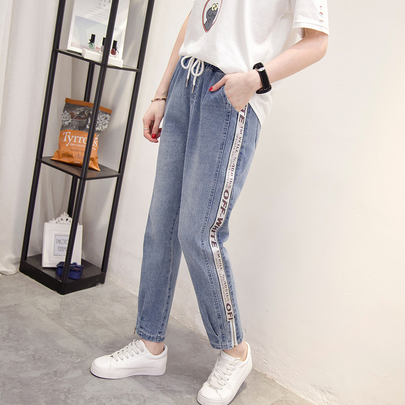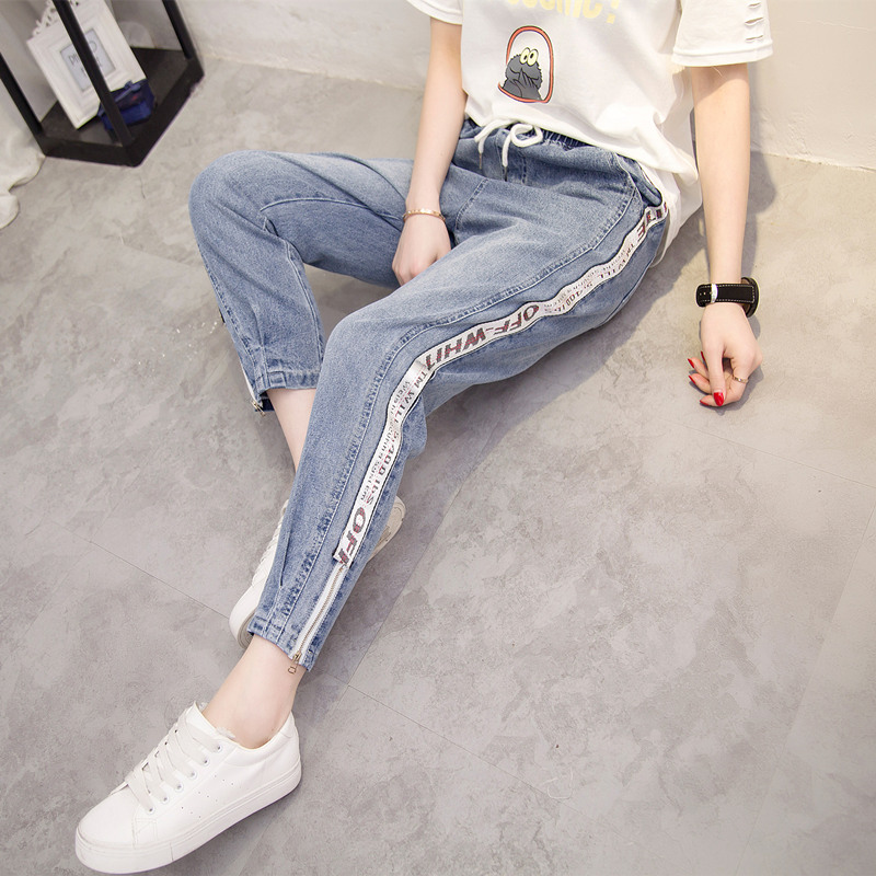 牛仔褲女春夏韓版女裝新款休閑顯瘦長褲子百搭系帶個性九分褲