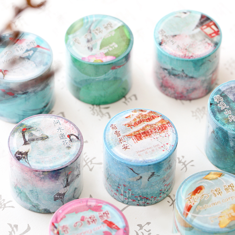 云木雜貨 原創古風和紙膠帶四季錦鯉仙鶴中國風水墨diy手賬37mm