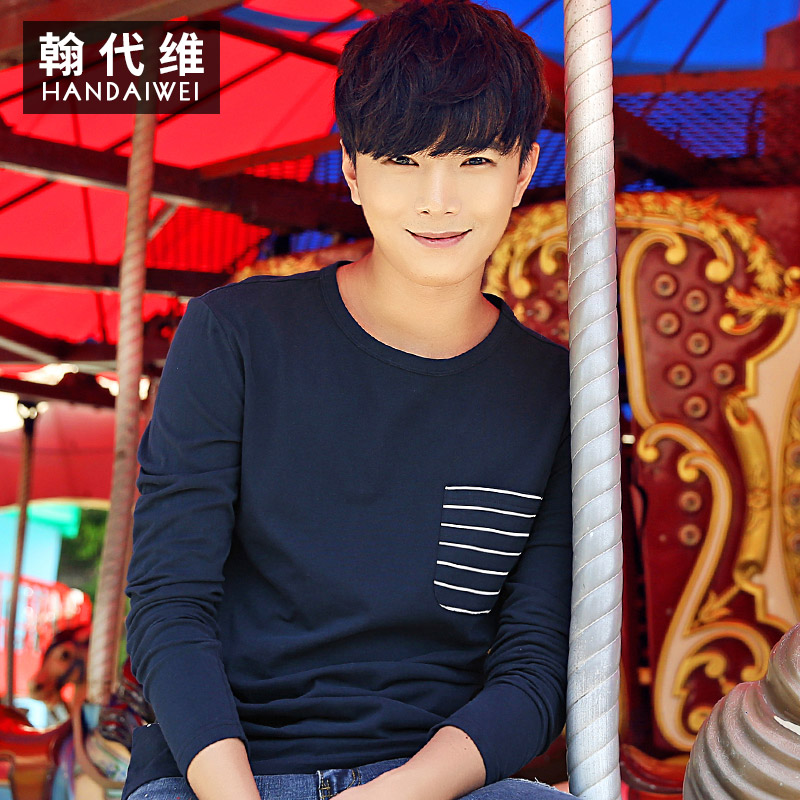 秋冬季韓版潮男裝長袖T恤純棉男士修身圓領體恤青少年學生上衣服