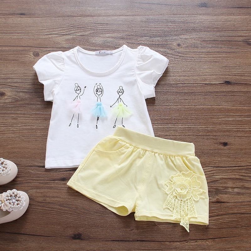 女童寶寶短袖t恤夏裝卡通上衣嬰兒純棉圓領泡泡袖百搭打底衫