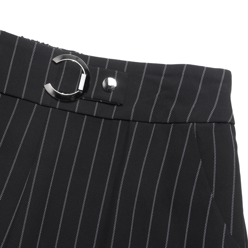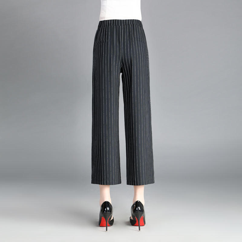 條紋闊腿褲女夏季新款女褲子寬松大碼直筒高腰寬腿休閑九分褲