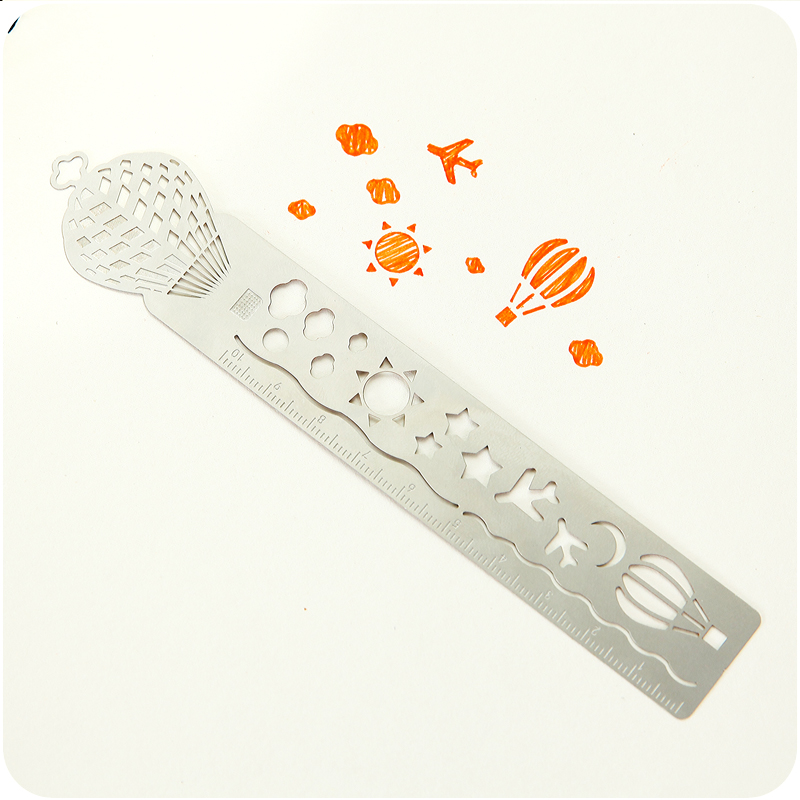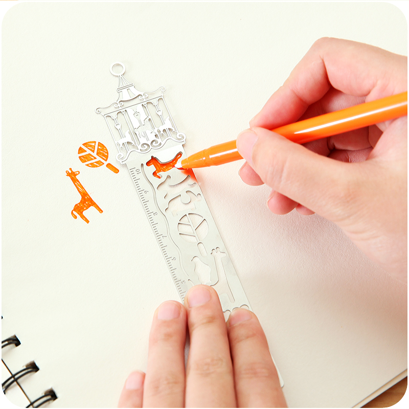 辦公學習創意文具鏤空繪畫標尺金屬書簽多功能直尺書夾尺子不銹鋼