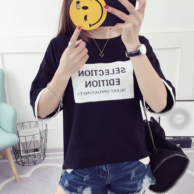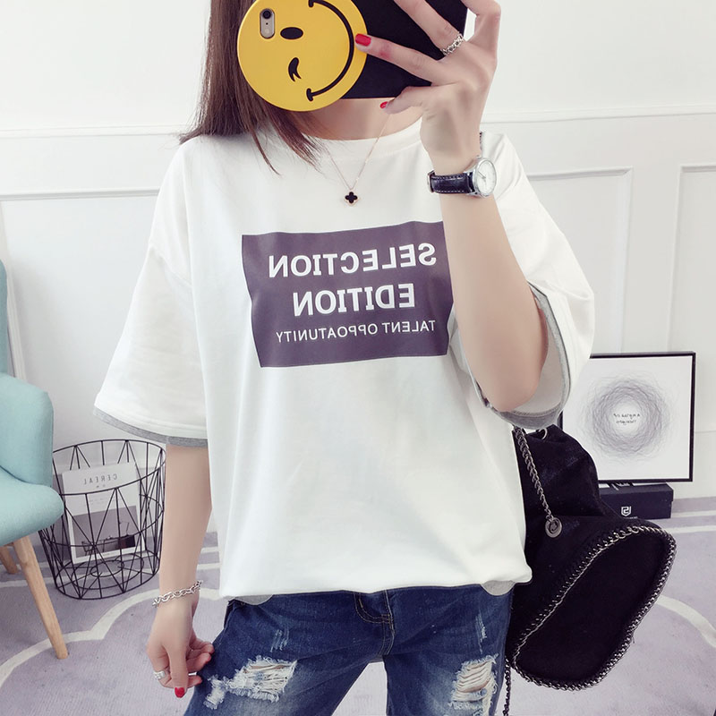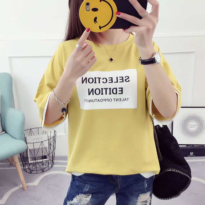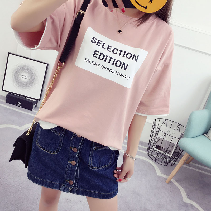 中袖t恤女中長款假兩件上衣學生韓版寬松百搭半袖夏新款體恤