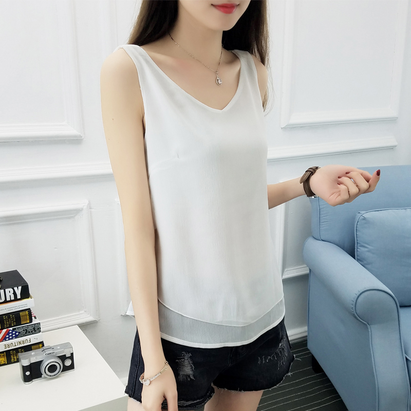 吊帶背心女夏季新款短款雪紡無袖t恤寬松學生百搭打底上衣吊帶衫