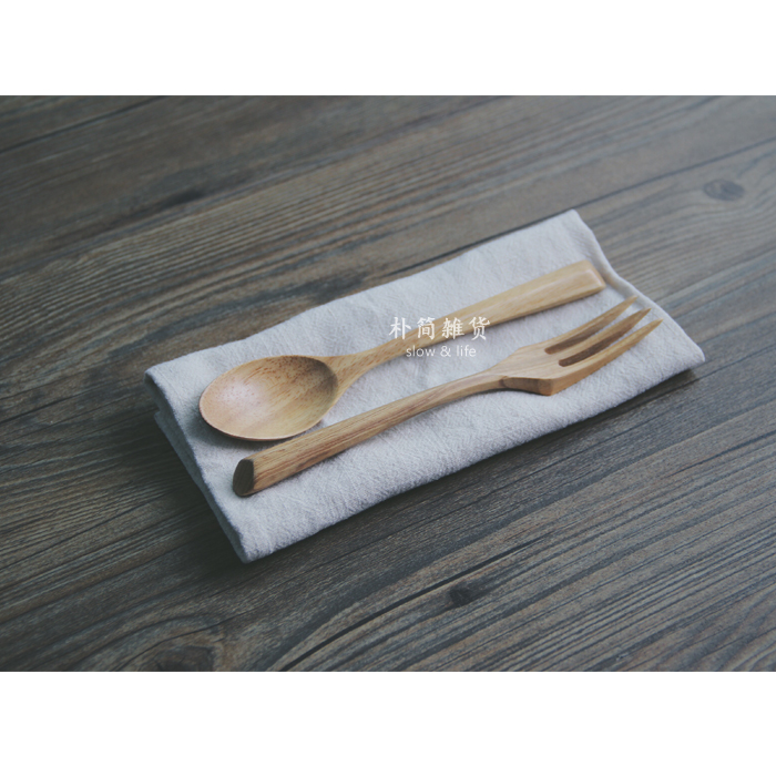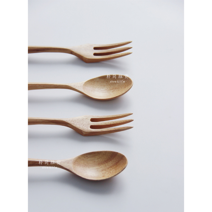 樸簡 日式木柄叉勺 木湯勺餐勺木餐叉水果叉 木制餐具套裝