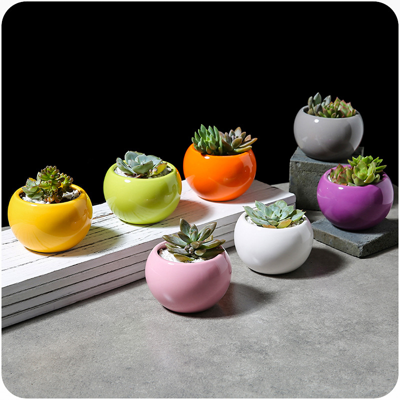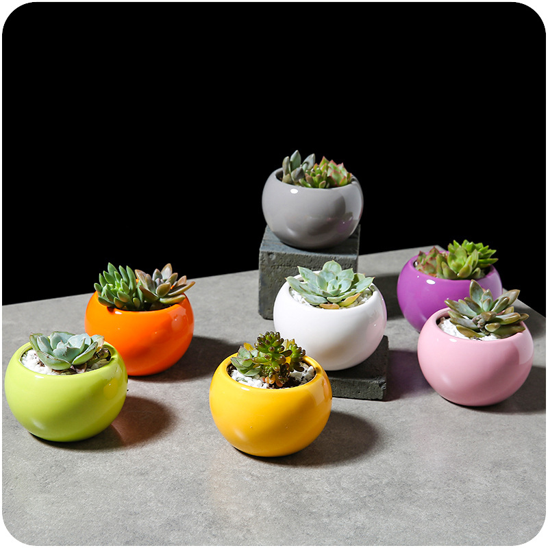 現代簡約多肉植物陶瓷花盆彩色個性大肚圓球花卉植物光滑精致花器