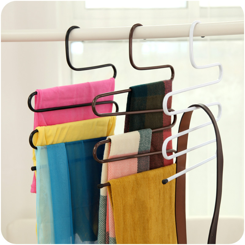 復古風褲架 金屬衣柜整理多功能S型褲架創意多層金屬防滑魔術衣架