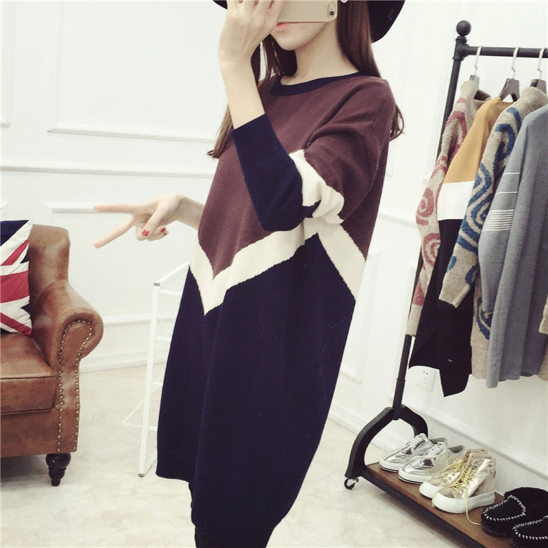 套頭毛衣女秋冬中長款寬松針織衫打底衫連衣裙冬裝女裝新款潮
