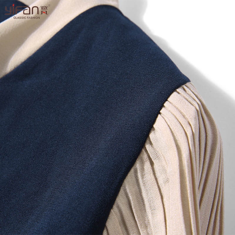 假兩件連衣裙春季時尚撞色拼接雪紡中長裙蝴蝶結領學院風裙子