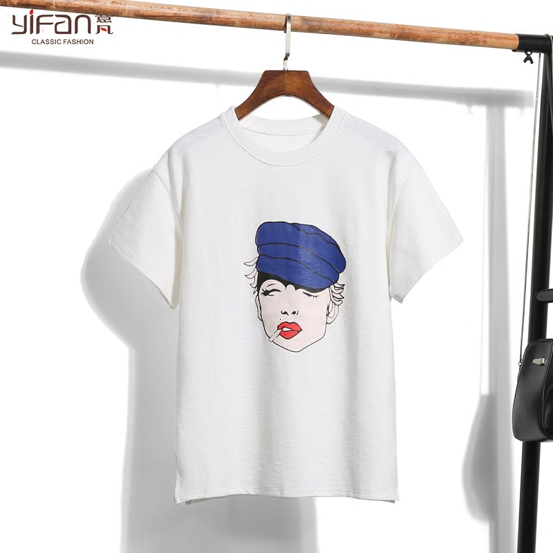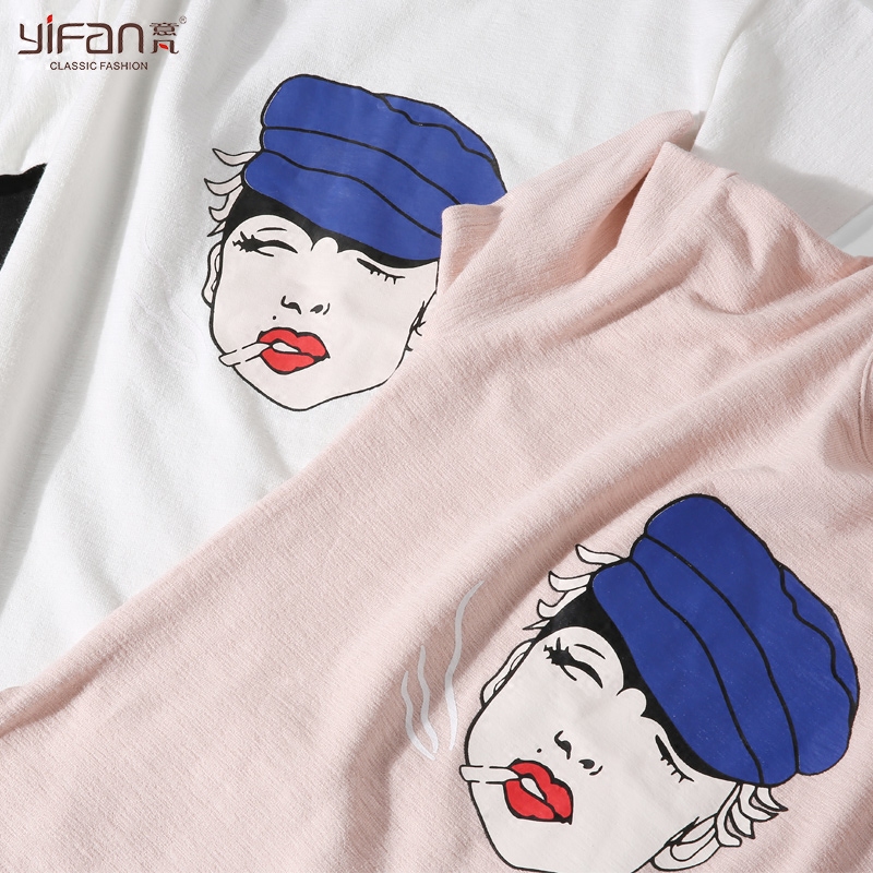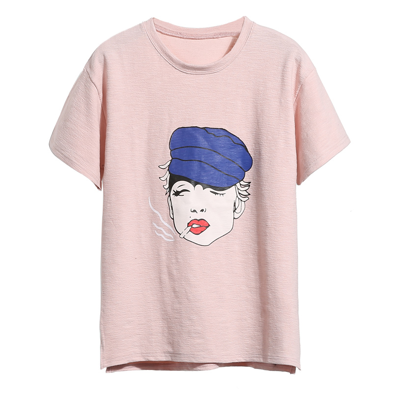 夏季煙女印花寬松大碼套頭短袖T恤女裝韓版純色百搭打底體恤