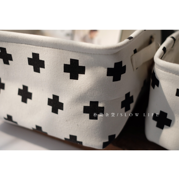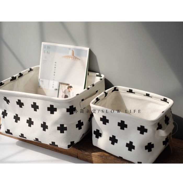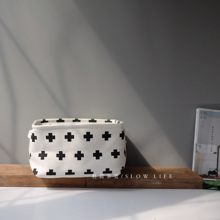 樸簡|北歐ins十字棉麻桌面收納籃收納盒 布藝儲物籃筐家居收納籃