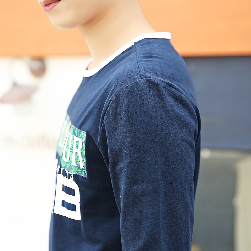 秋季男士長袖純棉圓領T恤韓版修身印花打底衫上衣服男裝秋衣潮款