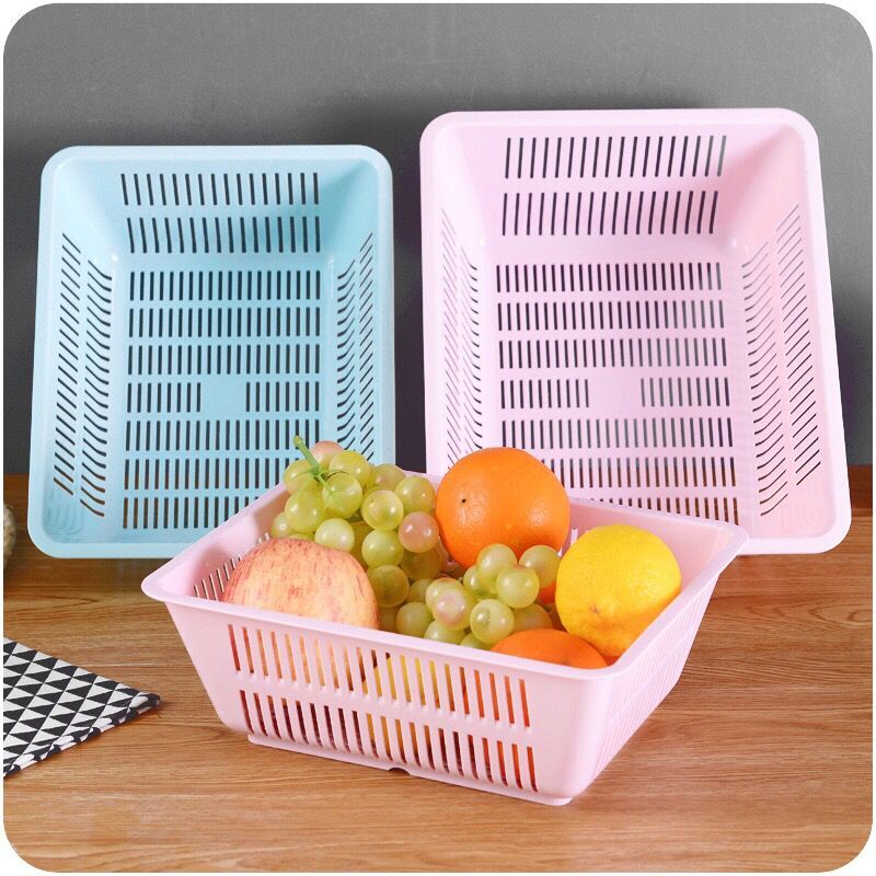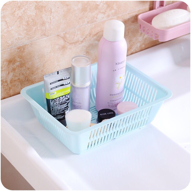 居家百貨桌面塑料鏤空方形收納籃 廚房蔬菜水果瀝水收納桌面籃子