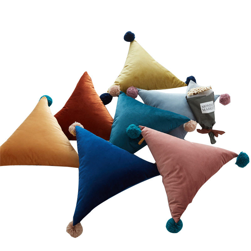 ins北歐出口手工毛球球三角形沙發抱枕墊子飄窗辦公室腰靠枕