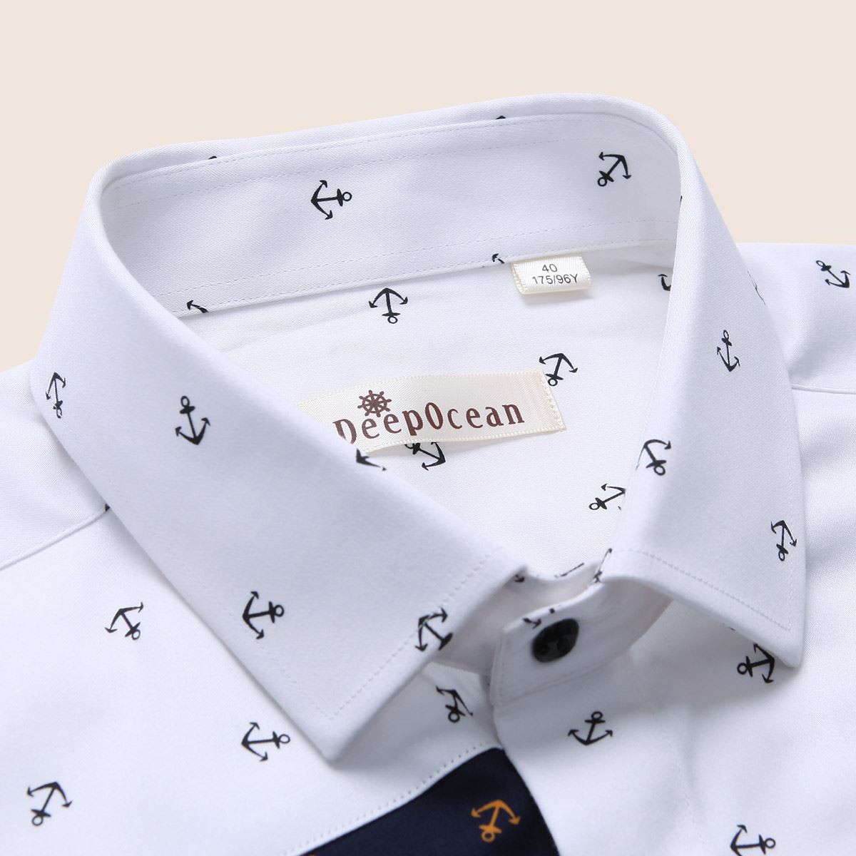 深海男士個性長袖襯衫時尚斜裁拼接印花休閑絲光棉純棉英襯衣秋款