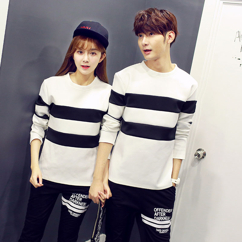 秋裝新款 韓版黑白拼色情侶裝長袖顯瘦休閑女裝大碼T恤上衣潮