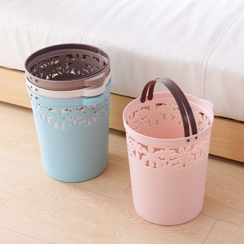 歐式鏤空花邊垃圾桶辦公室桌面收納盒居家手提壓邊袋圓通簡約紙簍