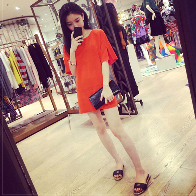 春夏新款女裝潮韓版顯瘦中裙子夏季短袖直筒連衣裙修身A字裙