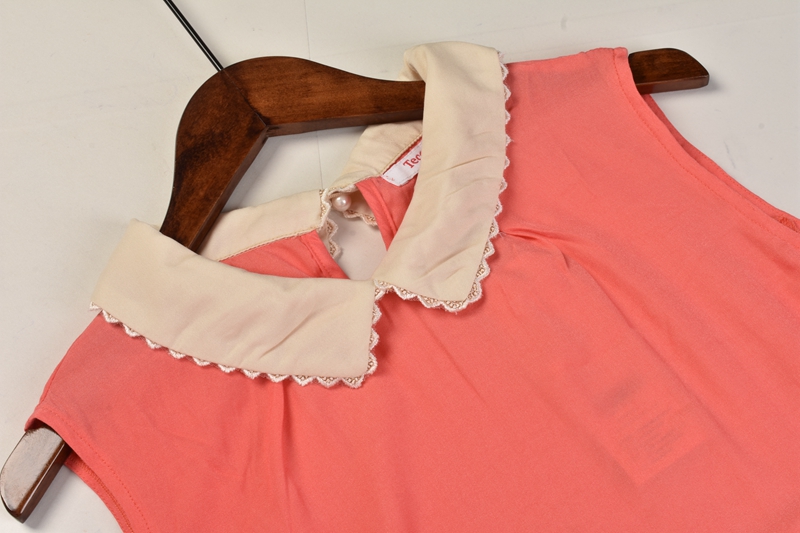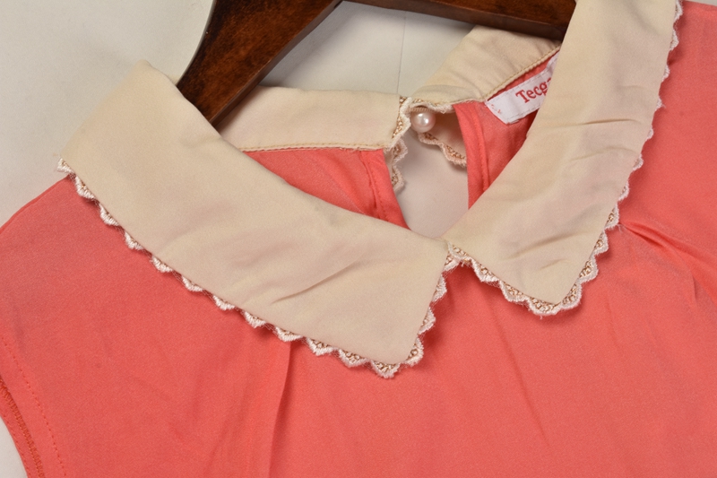 T恤日韓風拼色娃娃領大碼女裝春夏新款無袖顯瘦貨上衣