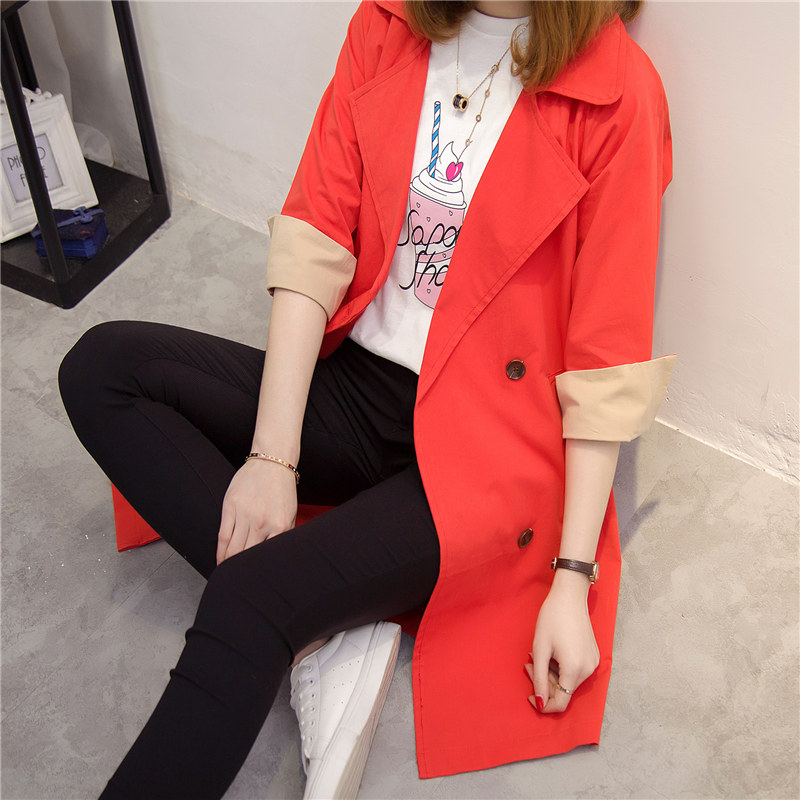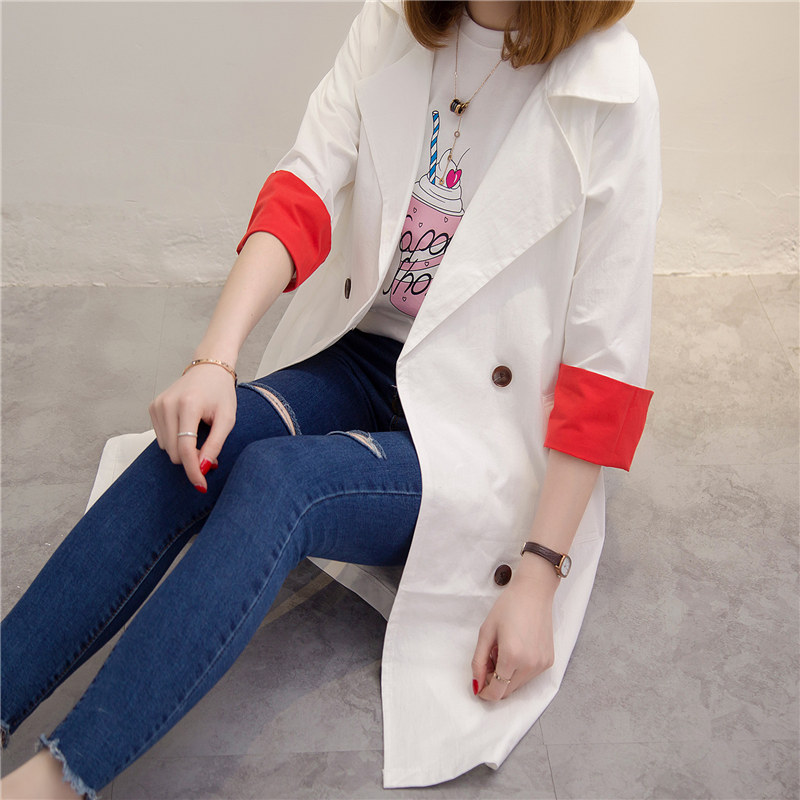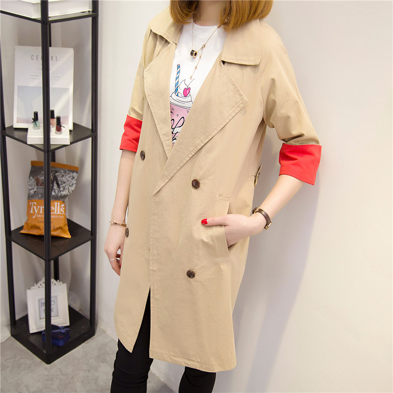 風衣女中長款韓版春季新款寬松連帽百搭簡約長袖薄外套防曬衣