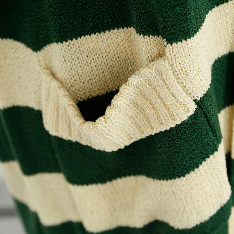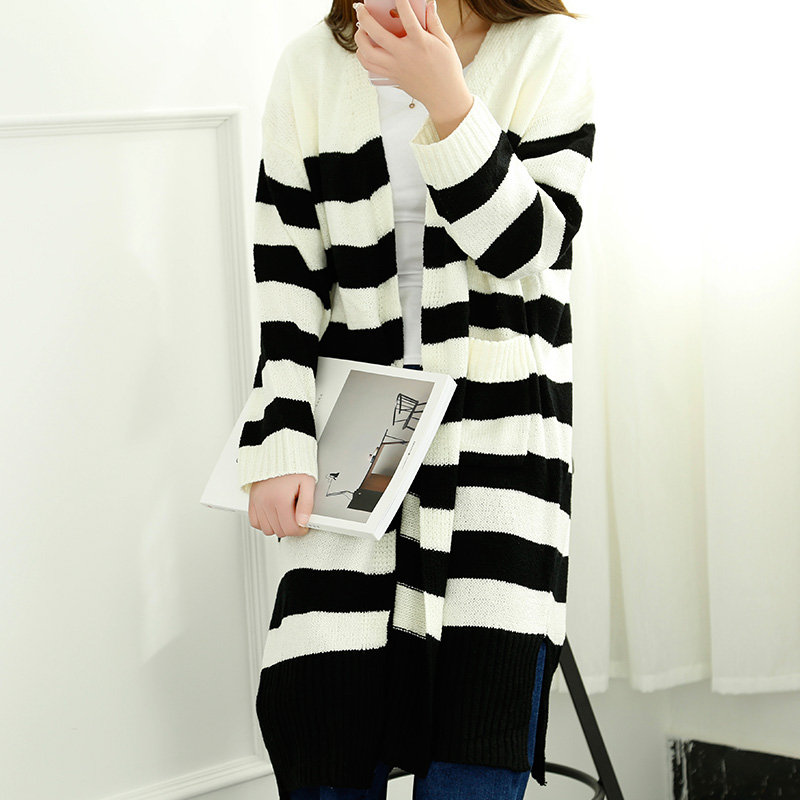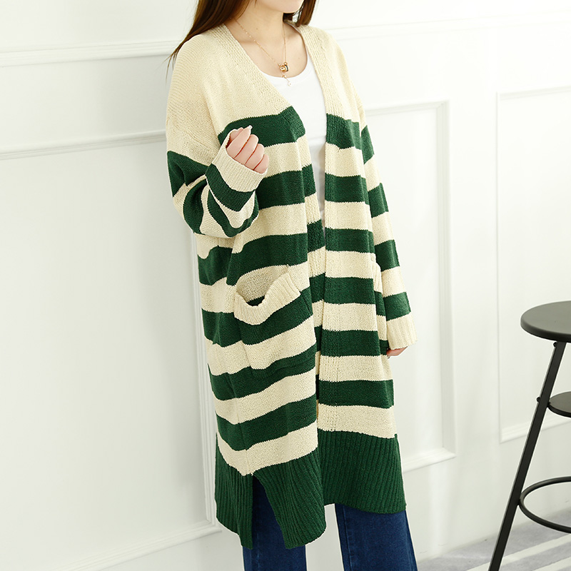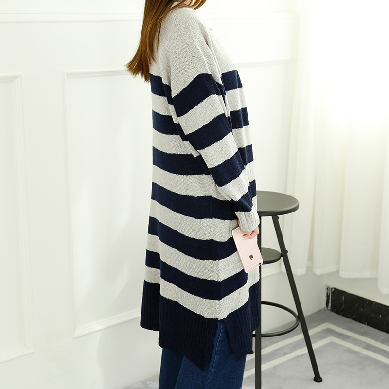 春裝新款女開衫韓版毛衣寬松中長款條紋長袖針織衫女裝外套潮