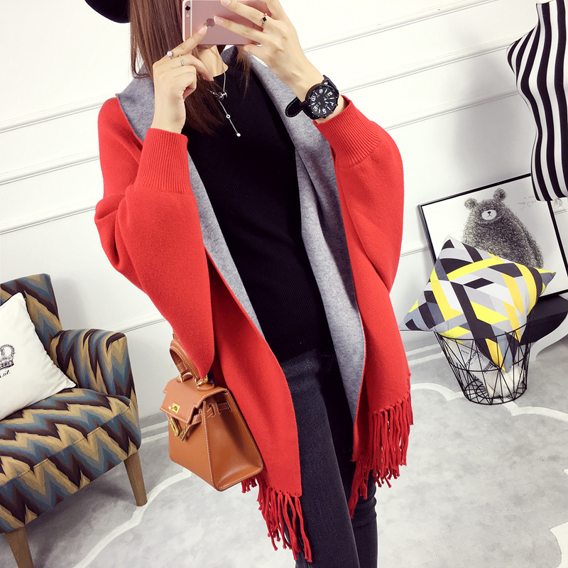 針織衫女套頭長袖秋季外套女蝙蝠袖開衫毛衣外套女裝秋裝新款