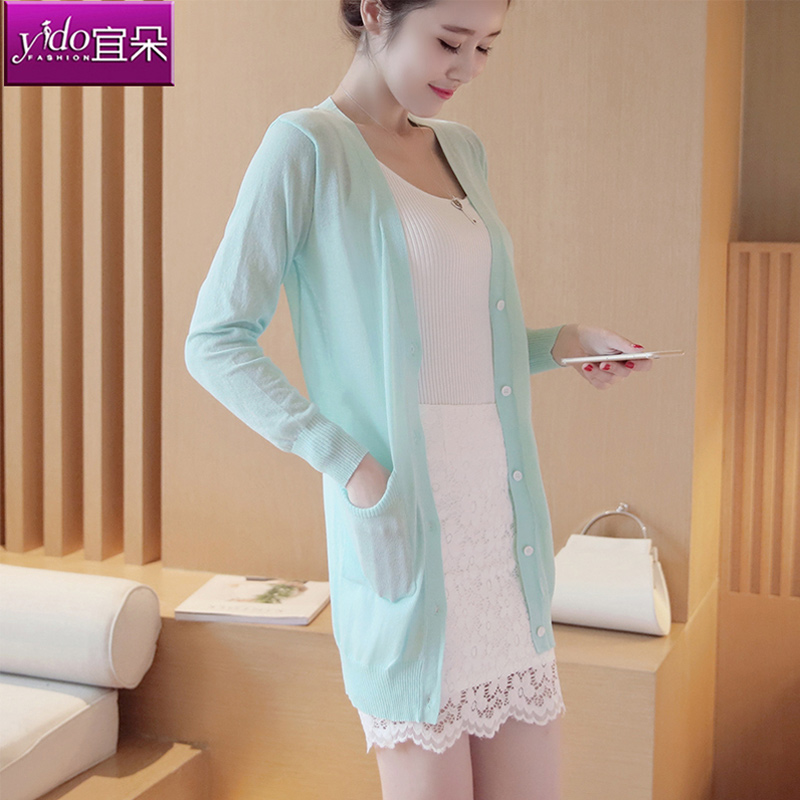 春夏針織衫開衫女中長款毛衣外搭女士長袖長款針織衫開衫外套女薄