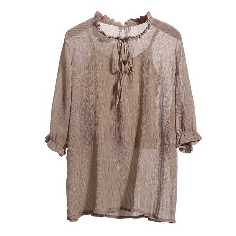 雪紡衫夏裝新款韓版寬松顯瘦喇叭袖襯衫七分袖短袖上衣兩件套