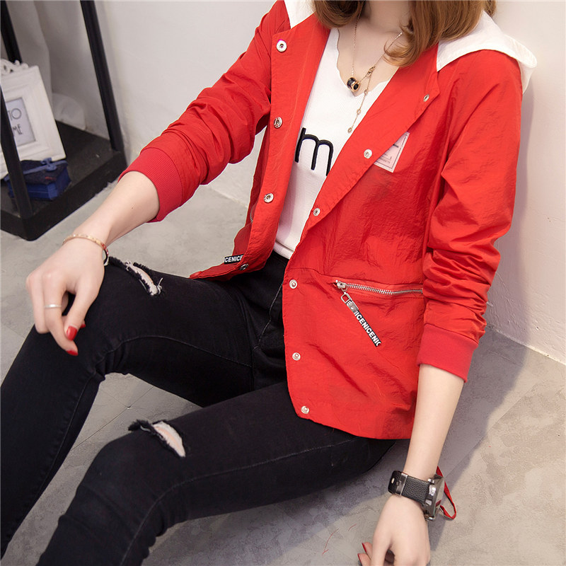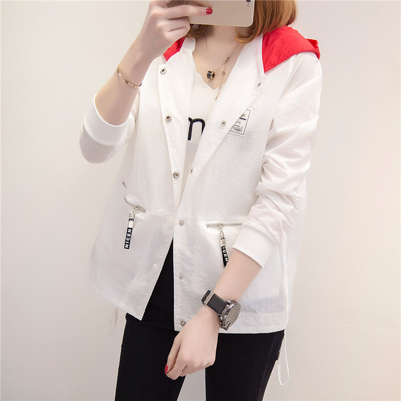 女裝春裝新款潮白色外套女夏寬松上衣韓版連帽薄款外套女百搭