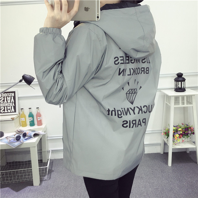 春秋季韓版夜光發光風衣男女潮牌3M反光衣服日系學生情侶運動外套