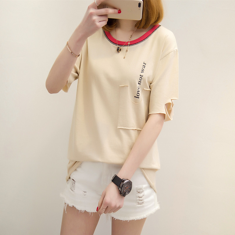 短袖t恤女上衣打底體恤女裝春裝新款潮寬松破洞韓版學生百搭