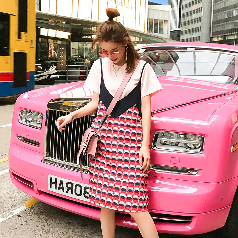 春裝夏裝新款寬松學生連衣裙兩件套女韓版時尚氣質性感吊帶裙套裝