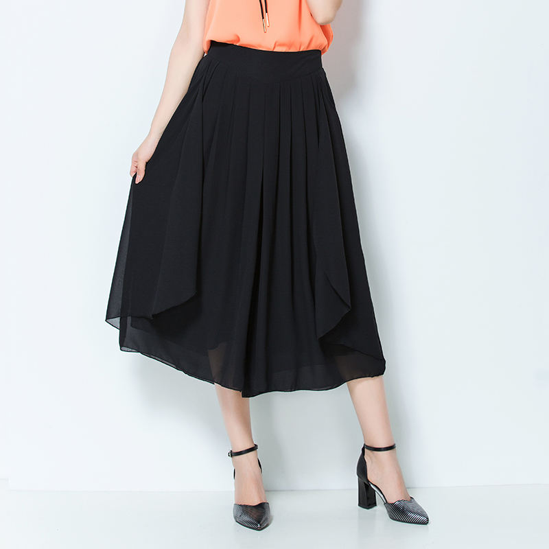 雪紡闊腿褲裙褲女七分褲高腰夏季百褶闊腳褲薄款九分寬腿褲子