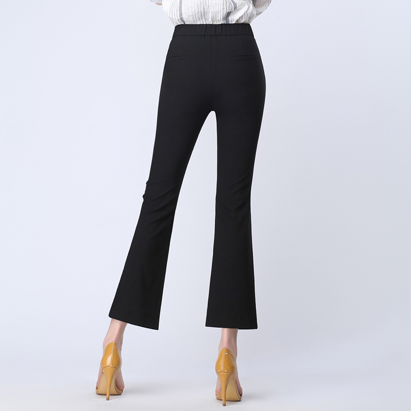 春夏季新款高腰微喇叭褲女褲顯瘦修身九分褲開叉魚尾西褲休閑褲女