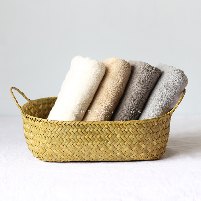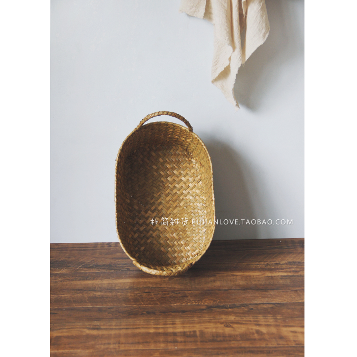 樸簡 日式手工海草編筐雙耳收納籃 桌面雜物籃整理儲物筐子