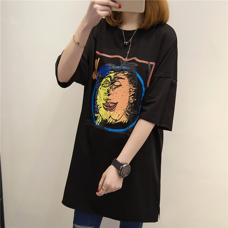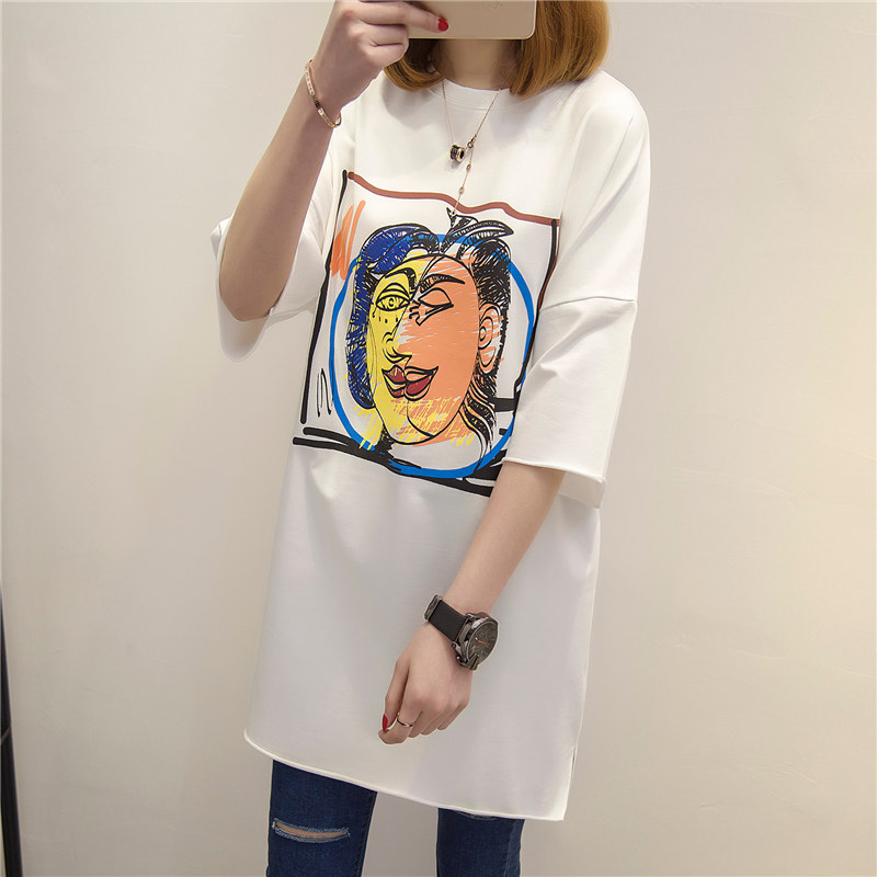 夏裝新款女裝韓版學生寬松套頭百搭上衣中長款白色t恤女短袖