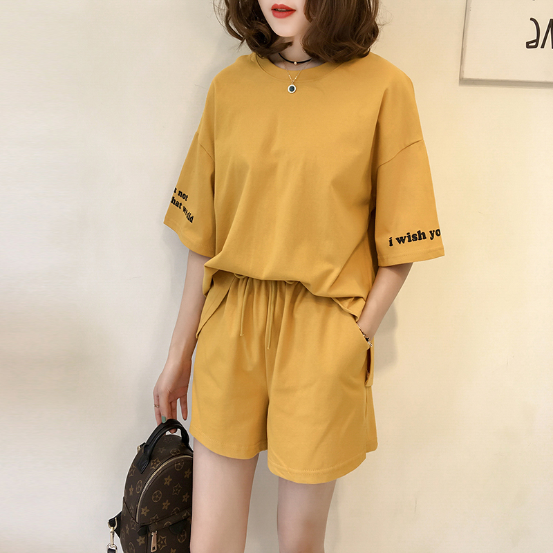 春裝夏裝女裝韓版套裝闊腿褲短褲寬松小香風上衣學生兩件套潮