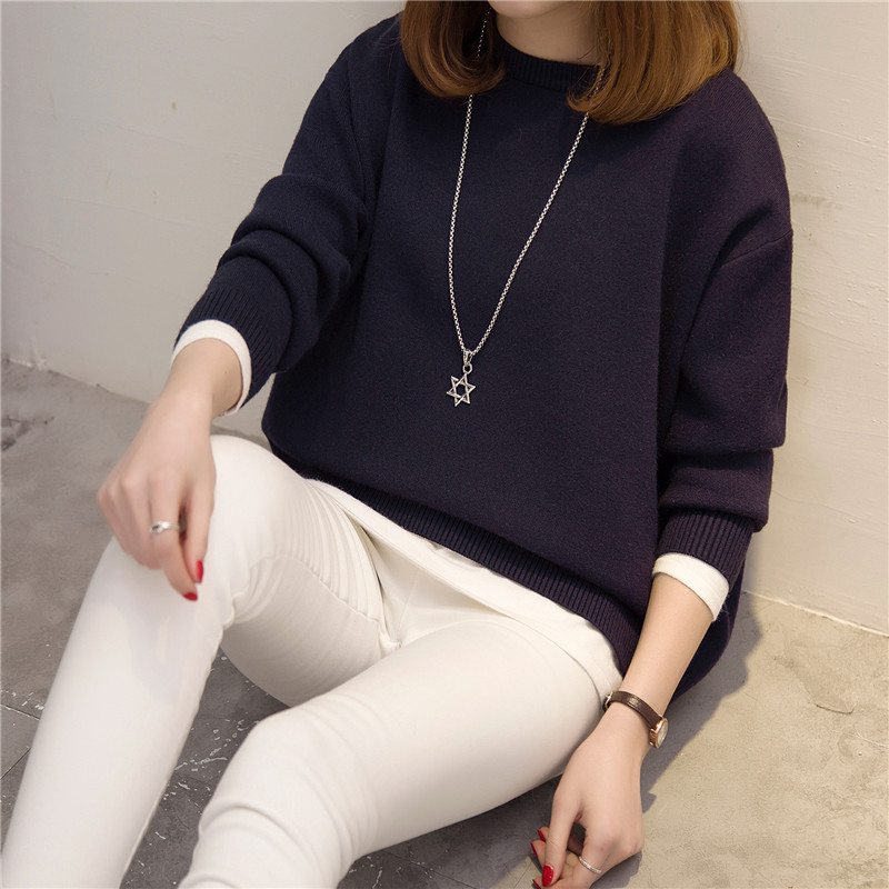 女裝春裝新款潮針織衫假兩件毛衣女秋冬套頭打底衫長袖外套女