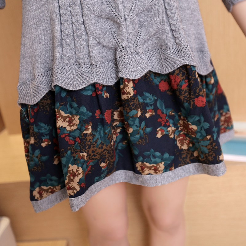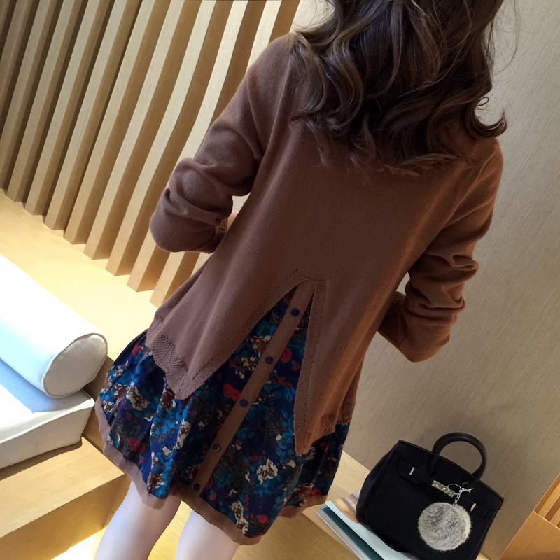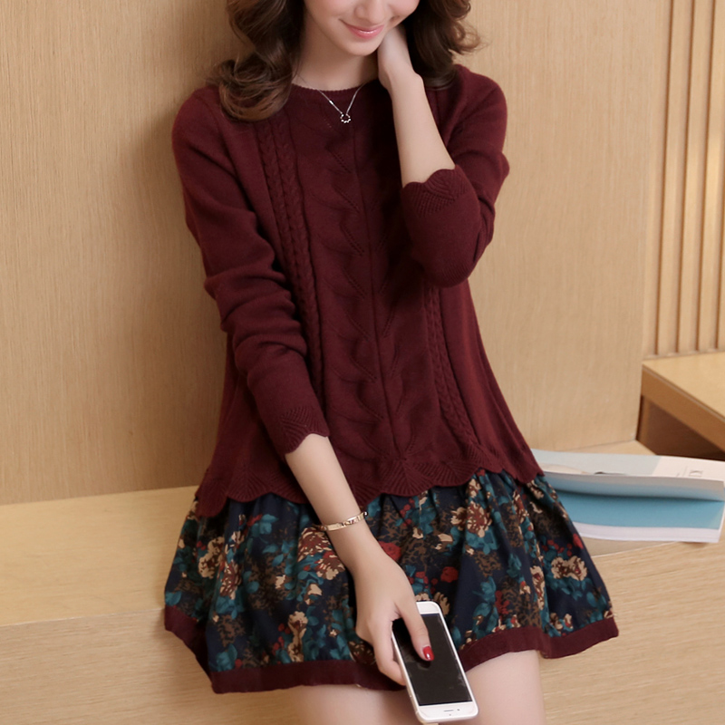 秋裝女裝新款潮韓版寬松針織衫套頭女毛衣長袖假兩件套連衣裙