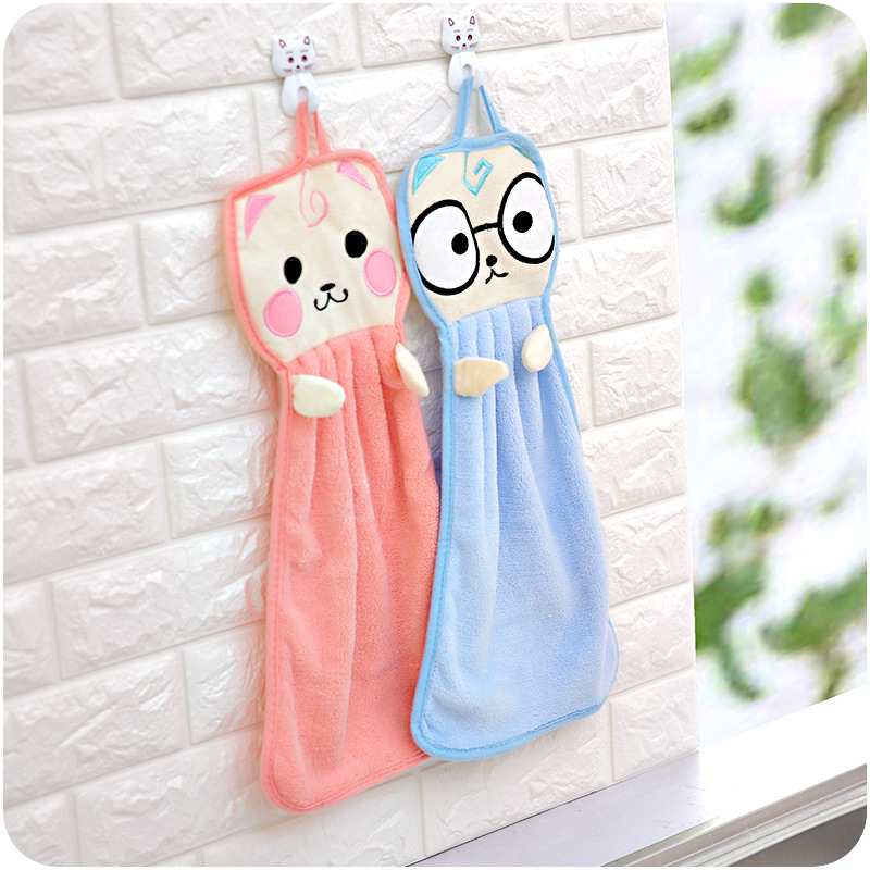 創意毛巾卡通可愛小貓加厚掛式擦手巾廚房浴室吸水擦手布抹布洗碗